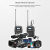 Paket İçeriği: Alıcı ve verici cihaz, 1 adet yaka mikrofonu (sünger ve yaka klipsi ile), 1 adet TRS kablo, 1 adet TRRS kablo (telefon için), hot shoe kamera bağlantı aparatı, 2 adet type-c usb kablo, 2 adet anten, ingilizce kullanım kılavuzu ve taşıma çantası.
